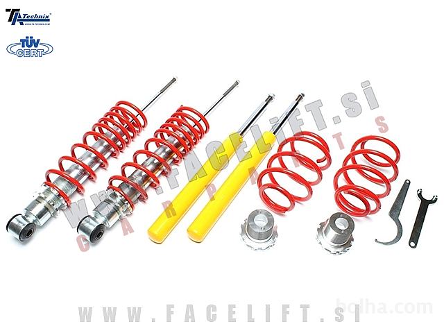 Nastavljivo vzmetenje (gewinde) TA-Technix. Vzmetenje je novo, z garancijo. Komplet vsebuje štiri amortizerje, štiri vzmeti in ključ za nastavitev višine.