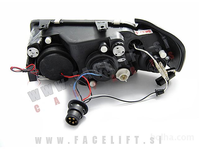 Halogenski žarometi z CCFL Angel Eyes obročki za pozicijske luči in lečo za kratki snop. Žarometi so novi, z garancijo. V kompletu prejmete par, levi in desni žaromet.