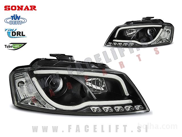 Žarometi z Tube Light in lečo. Žarometi so novi, z garancijo. V kompletu prejmete par, levi in desni žaromet.