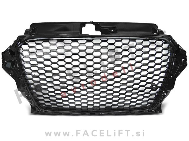 Maska motorja, RS izgled. V kompletu prejmete masko, nosilec Audi emblema, nosilec registrske tablice in nosilce parkirnih senzorjev PDC. Maska je nova.