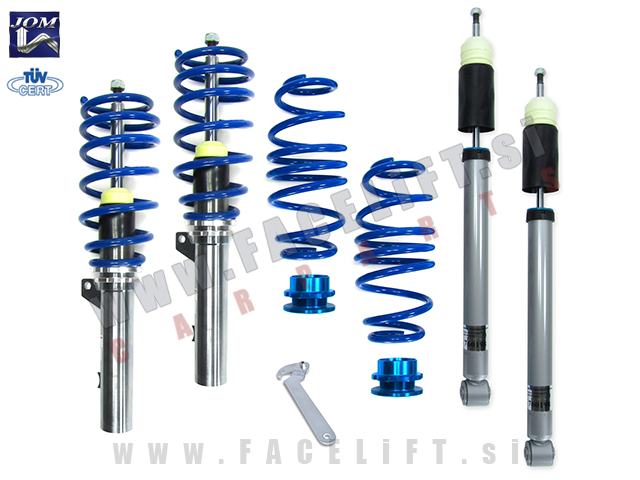 Nastavljivo vzmetenje (gewinde) JOM. Vzmetenje je novo, z garancijo. Komplet vsebuje štiri amortizerje, štiri vzmeti in ključ za nastavitev višine.