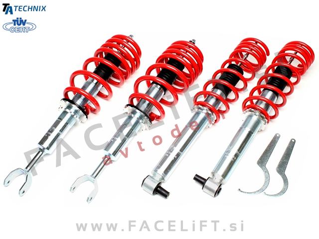 Nastavljivo vzmetenje (gewinde) TA Technix. Vzmetenje je novo, z garancijo. Komplet vsebuje štiri amortizerje, štiri vzmeti in ključ za nastavitev višine.