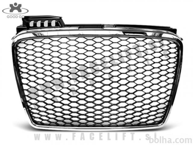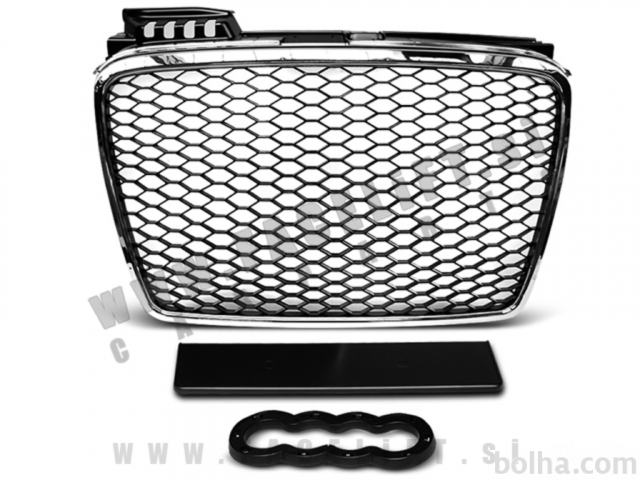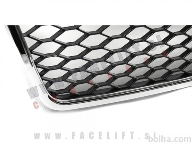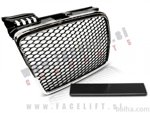 Maska motorja, RS izgled. V kompletu prejmete masko, nosilec registrske tablice, nosilec Audi emblema in nosilce parkirnih PDC senzorjev. Maska je nova.