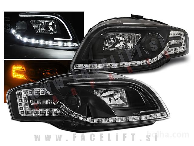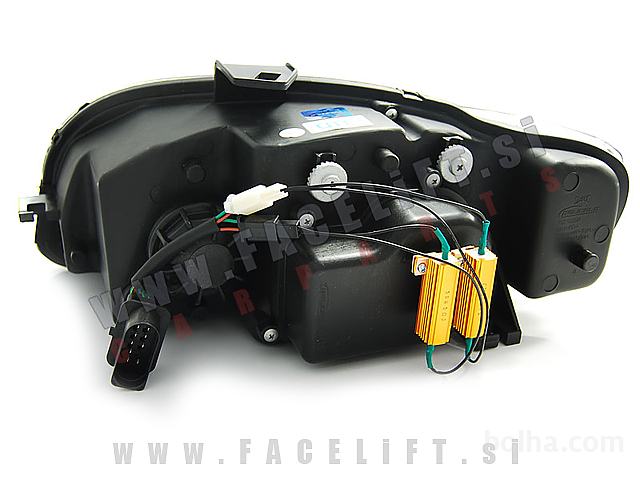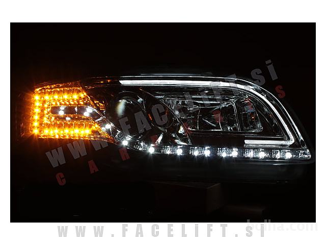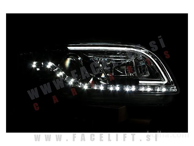 Žarometi z LED dnevnimi lučmi in lečo. Žarometi so novi, z garancijo. V kompletu prejmete par, levi in desni žaromet.