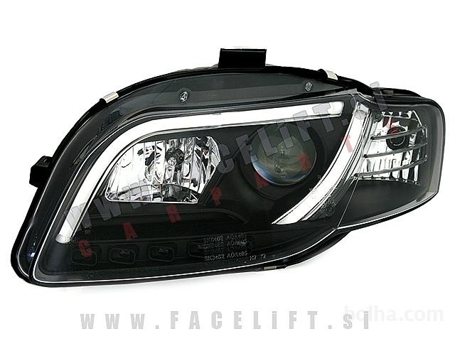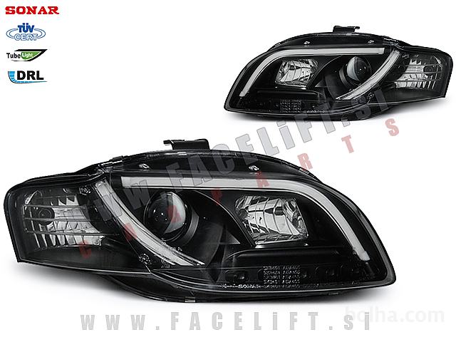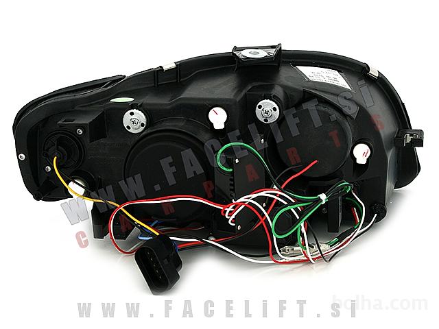 Halogenski žarometi z LED Tube Light dnevnimi lučmi in lečo. Žarometi so novi, z garancijo. V kompletu prejmete par, levi in desni žaromet.