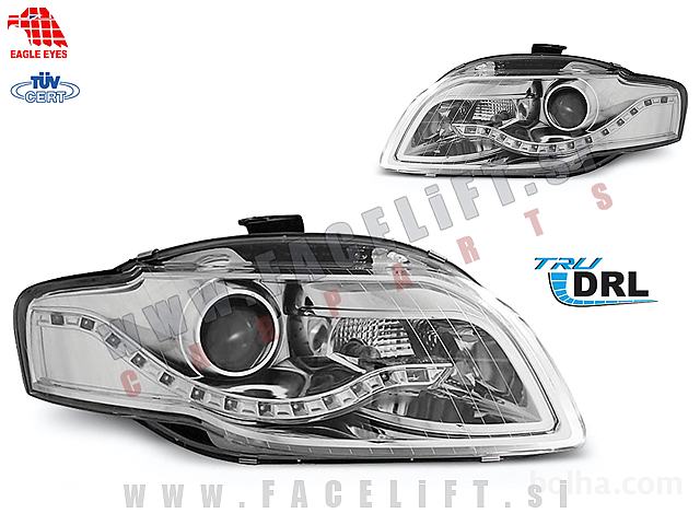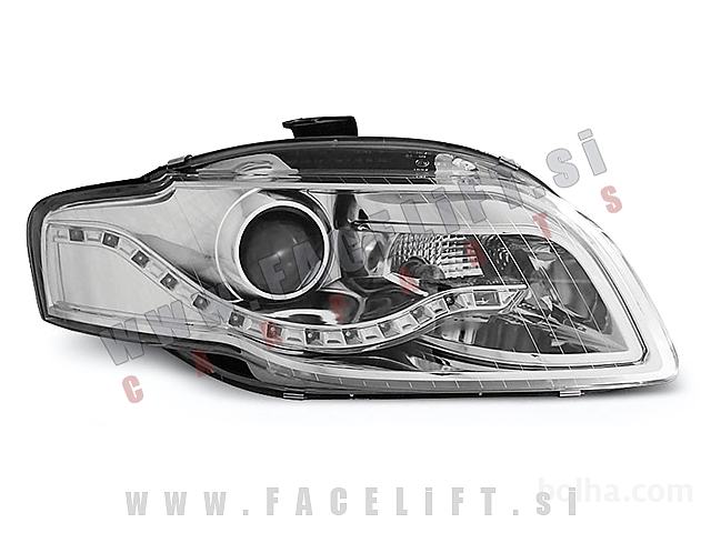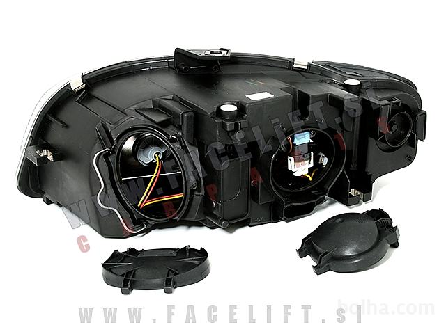 Žarometi z LED dnevnimi lučmi in lečo. Žarometi so novi, z garancijo. V kompletu prejmete par, levi in desni žaromet.