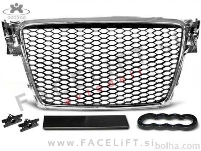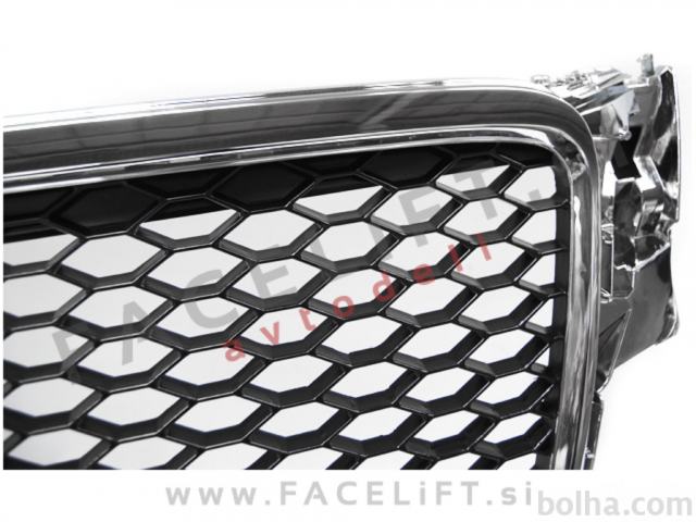 Maska motorja, RS izgled. V kompletu prejmete masko, nosilec Audi emblema, nosilec registrske tablice in nosilce parkirnih senzorjev PDC. Maska je nova.