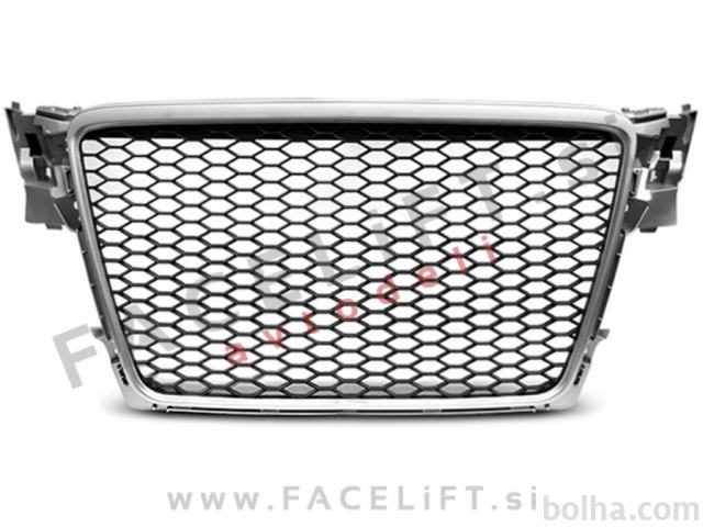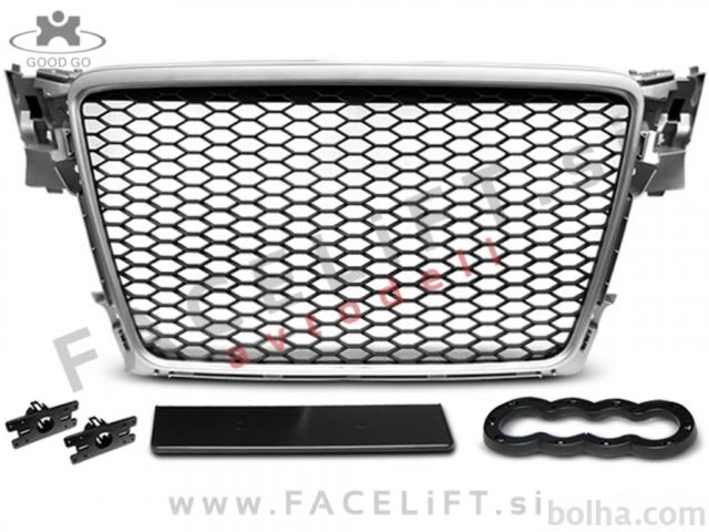 Maska motorja, RS izgled. V kompletu prejmete masko, nosilec Audi emblema, nosilec registrske tablice in nosilce parkirnih senzorjev PDC. Maska je nova.