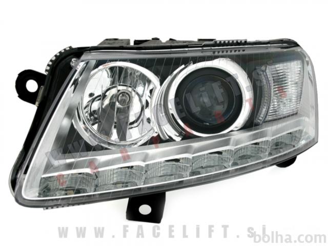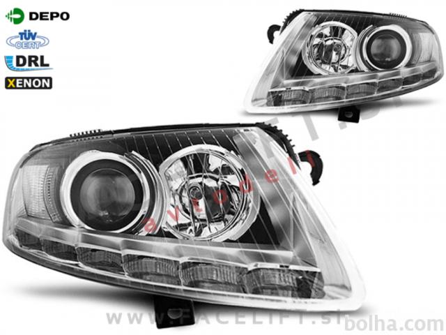 BI-Xenon žarometi z LED dnevnimi lučmi in lečo. Žarometi so novi, z garancijo. V kompletu prejmete par, levi in desni žaromet.