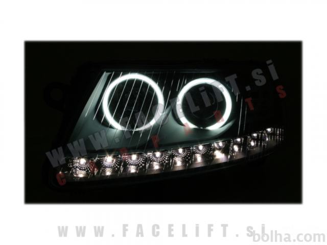 Žarometi z CCFL Angel Eyes obročki, LED Devil Eyes in lečo. Žarometi so novi, z garancijo. V kompletu prejmete par, levi in desni žaromet.