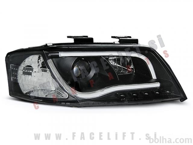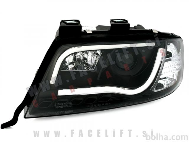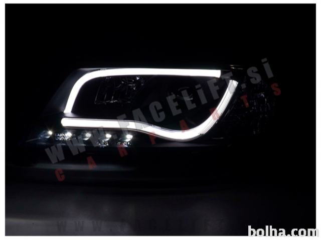 Halogenski žarometi z LED Tube Light dnevnimi lučmi in lečo. Žarometi so novi, z garancijo. V kompletu prejmete par, levi in desni žaromet.