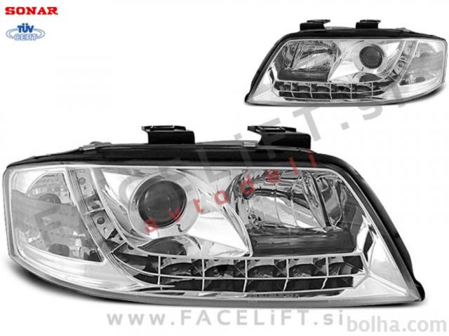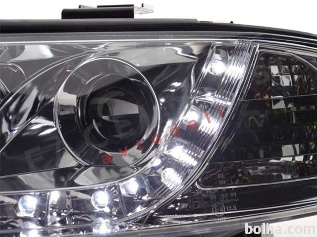 Halogenski žarometi z LED pozicijskimi lučmi in lečo za kratki in dolgi snop. Žarometi so novi, z garancijo. V kompletu prejmete par, levi in desni žaromet.