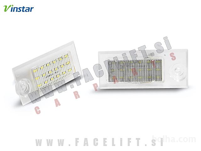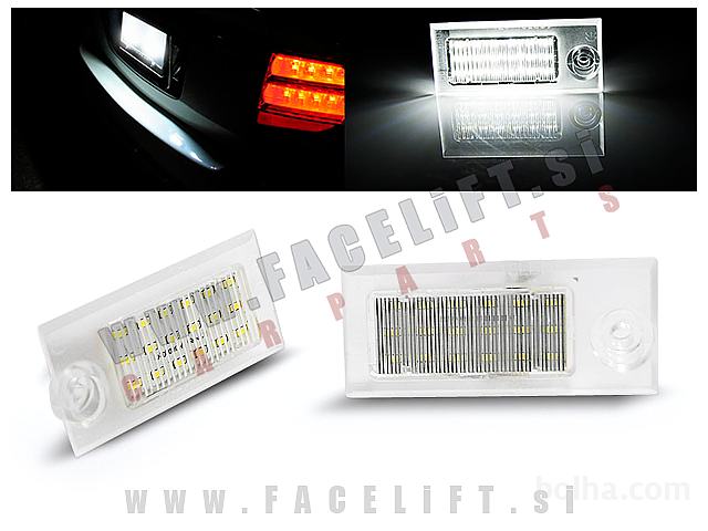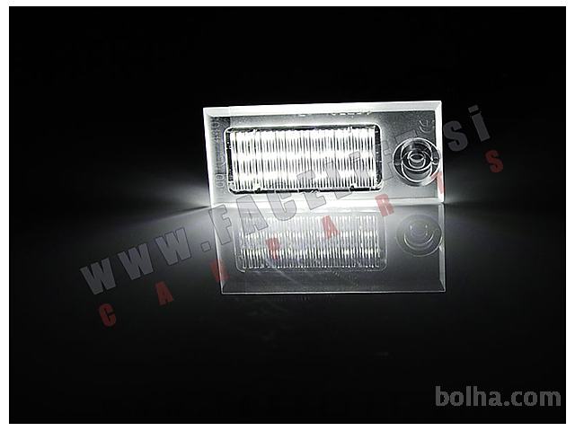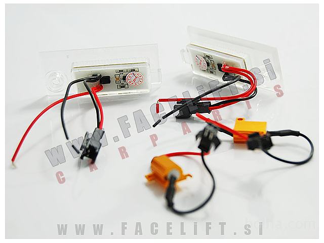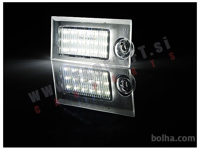 LED osvetlitev registrske tablice z ohišjem. Komplet vsebuje dva kosa.