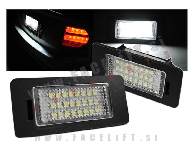 LED osvetlitev registrske tablice z ohišjem. V kompletu prejmete par. Osvetlitev je nova, z garancijo.
