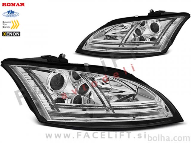 BI-Xenon žarometi z LED dnevnimi lučmi (DRL), lečo in dinamičnim LED smernikom (DTS). Žarometi so novi, z garancijo. V kompletu prejmete par, levi in desni žaromet.