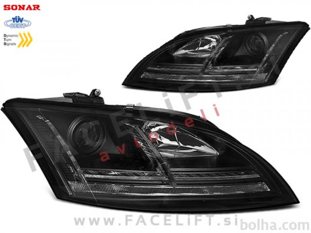 Halogenski žarometi z LED pozicijskimi lučmi, lečo in dinamičnim LED smernikom (DTS). Žarometi so novi, z garancijo. V kompletu prejmete par, levi in desni žaromet.