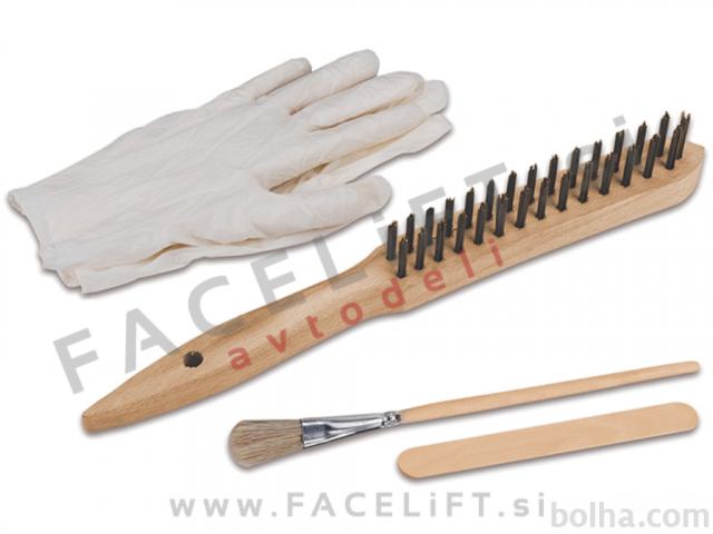 Barva za zavorne čeljusti. Set vsebuje barvo, 400ml čistila, 125ml barve, 50ml trdilca, zaščitne rokavice, čopič in krtačo.