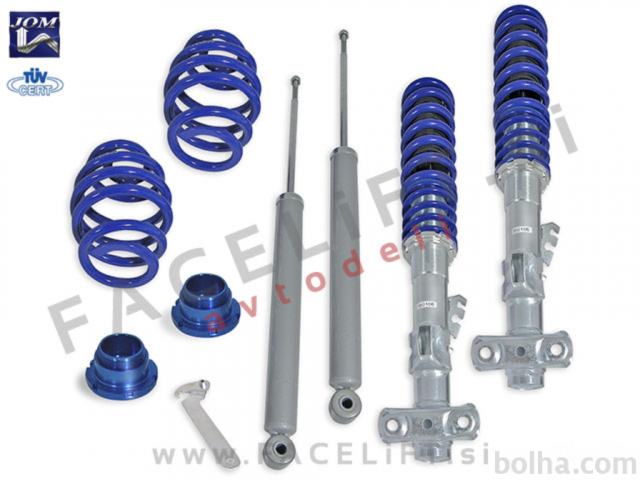 Nastavljivo vzmetenje (gewinde) JOM. Vzmetenje je novo, z garancijo. Komplet vsebuje štiri amortizerje, štiri vzmeti in ključ za nastavitev višine.