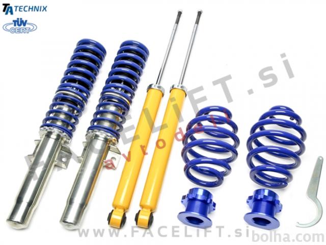 Nastavljivo vzmetenje (gewinde) Tuningart. Vzmetenje je novo, z garancijo. Komplet vsebuje štiri amortizerje, štiri vzmeti in ključ za nastavitev višine.