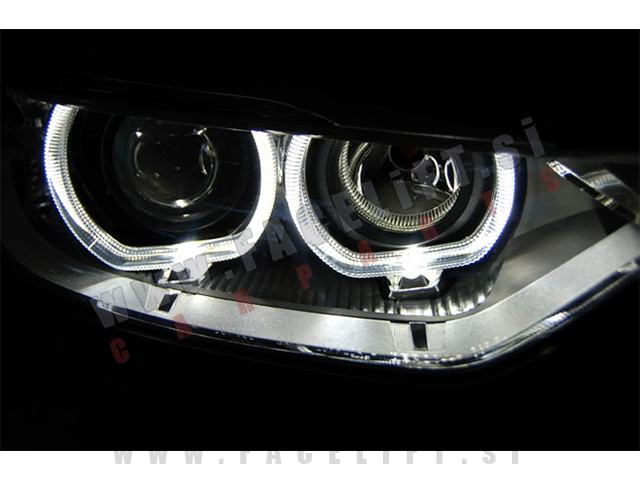 Halogenski žarometi z LED dnevnimi lučmi in lečo. Žarometi so novi, z garancijo. V kompletu prejmete par, levi in desni žaromet.