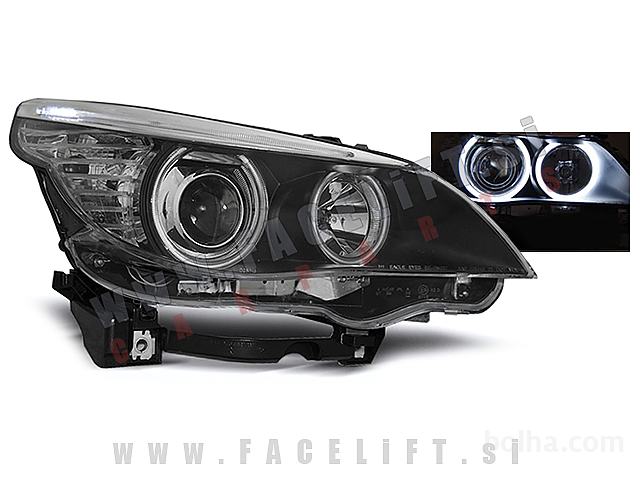 Žarometi z LED Angel Eyes obročki in lečo. Žarometi so novi, z garancijo. V kompletu prejmete par, levi in desni žaromet.