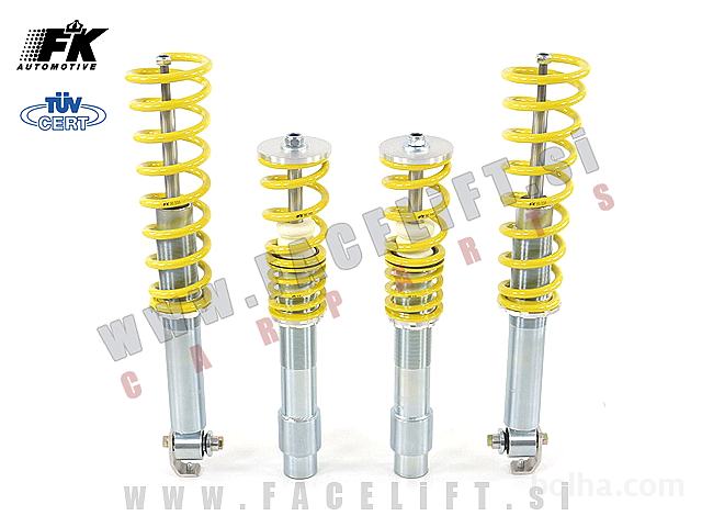 Nastavljivo vzmetenje FK. Vzmetenje je novo, z garancijo. Komplet vsebuje štiri amortizerje in štiri vzmeti.
