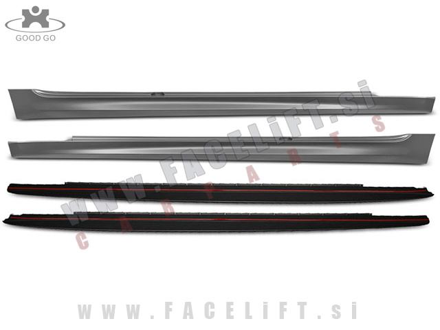 Bočni pragovi M-Performance izgled. V kompletu prejmete par, levi in desni prag in podaljške. Pragovi so novi in pripravljeni za barvanje (v primerju).