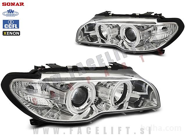 Xenon žarometi z LED CCFL Angel Eyes obročki in lečo. Žarometi so novi, z garancijo. V kompletu prejmete par, levi in desni žaromet.