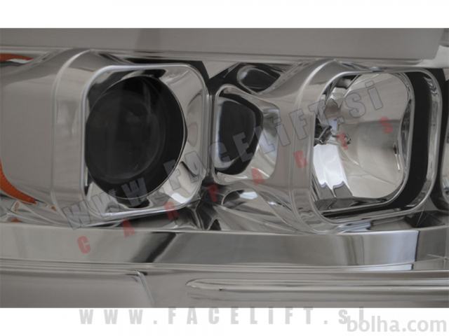 Halogenski žarometi z LED pozicijskimi lučmi in lečo. Žarometi so novi, z garancijo. V kompletu prejmete par, levi in desni žaromet.