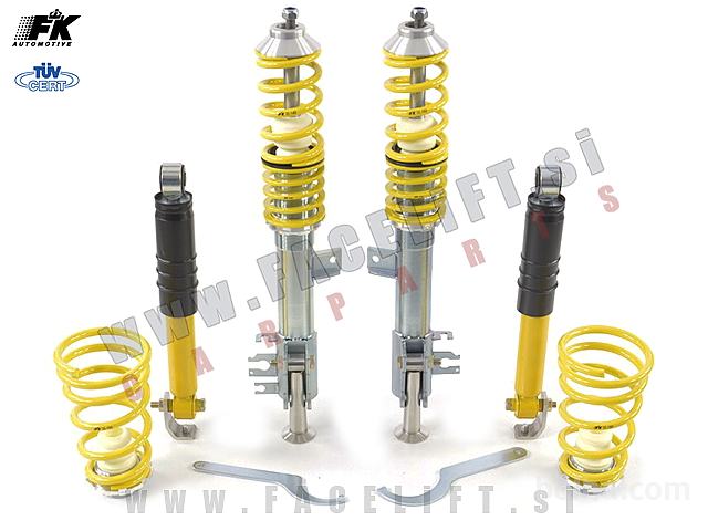 Nastavljivo vzmetenje (gewinde) FK. Vzmetenje je novo, z garancijo. Komplet vsebuje štiri amortizerje, štiri vzmeti in ključ za nastavitev višine.