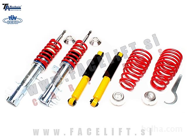Nastavljivo vzmetenje (gewinde) TA Technix. Vzmetenje je novo, z garancijo. Komplet vsebuje štiri amortizerje, štiri vzmeti in ključ za nastavitev višine.