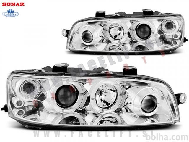 Halogenski žarometi z LED Angel Eyes pozicijskimi lučmi kratki snop. Žarometi so novi, z garancijo. V kompletu prejmete par, levi in desni žaromet.