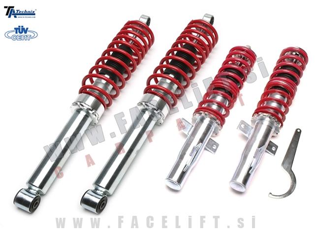 Nastavljivo vzmetenje (gewinde) TA-Technix. Vzmetenje je novo, z garancijo. Komplet vsebuje štiri amortizerje, štiri vzmeti in ključ za nastavitev višine.