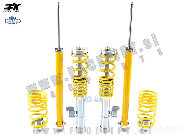 Nastavljivo vzmetenje (gewinde) FK. Vzmetenje je novo, z garancijo. Komplet vsebuje štiri amortizerje, štiri vzmeti in ključ za nastavitev višine.