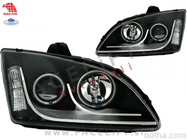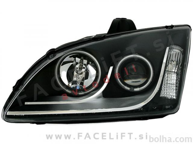 Halogenski žarometi z Angel Eyes obročki in LED diodami za pozicijske luči. Žarometi so novi, z garancijo. V kompletu prejmete par, levi in desni žaromet.