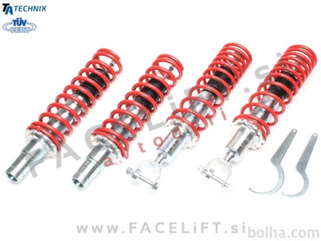 Nastavljivo vzmetenje (gewinde) TA-Technix. Vzmetenje je novo, z garancijo. Komplet vsebuje štiri amortizerje, štiri vzmeti in ključ za nastavitev višine.