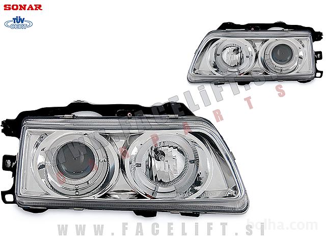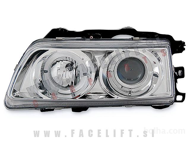 Halogenski žarometi z LED Angel Eyes obročkom za pozicijske luči in lečo. Žarometi so novi, z garancijo. V kompletu prejmete par, levi in desni žaromet.