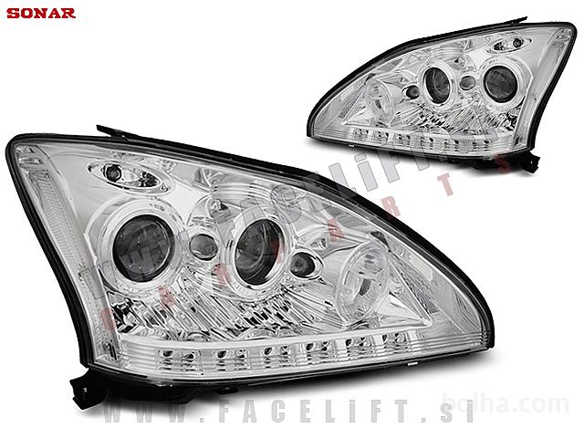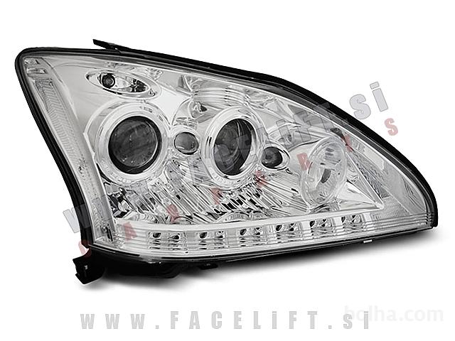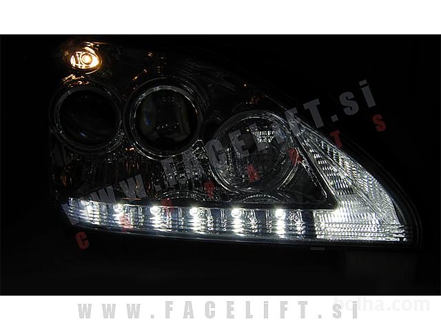 Žarometi z LED pozicijskimi lučmi in lečo. Žarometi so novi, z garancijo. V kompletu prejmete par, levi in desni žaromet.