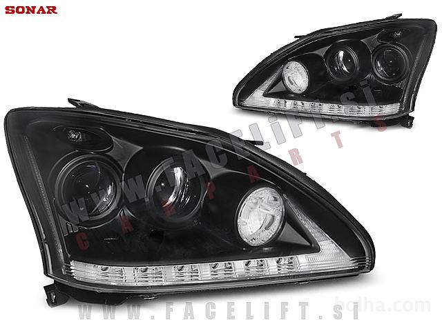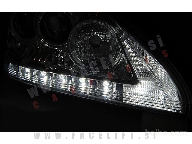 Žarometi z LED pozicijskimi lučmi in lečo. Žarometi so novi, z garancijo. V kompletu prejmete par, levi in desni žaromet.