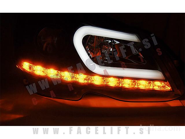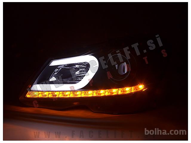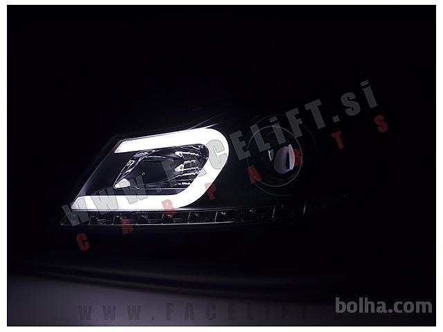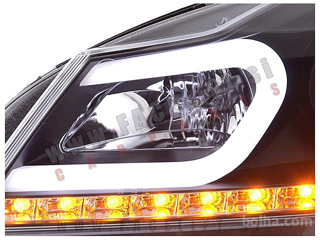 Žarometi z LED Tube Light pozicijskimi lučmi in lečo. Žarometi so novi, z garancijo. V kompletu prejmete par, levi in desni žaromet.