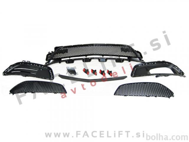 Sprednji odbijač AMG A45 izgled. V kompletu prejmete sprednji odbijač, pokrov vlečne kljuke, levo, desno, srednjo mrežo in ostalo kar je prikazano na sliki. Odbijač je nov in pripravljen za barvanje (v primerju).