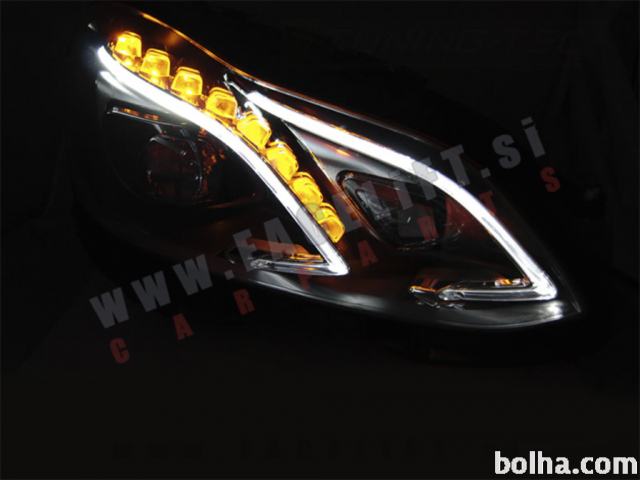 LED žarometi z LED dnevnimi lučmi DRL in lečo za kratki in dolgi snop. Žarometi so novi, z garancijo. V kompletu prejmete par, levi in desni žaromet.