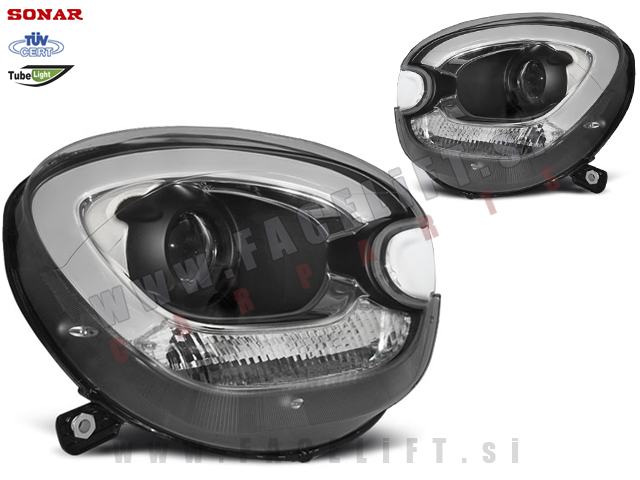 Žarometi z LED TubeLight pozicijskimi lučmi in lečo. Žarometi so novi, z garancijo. V kompletu prejmete par, levi in desni žaromet.