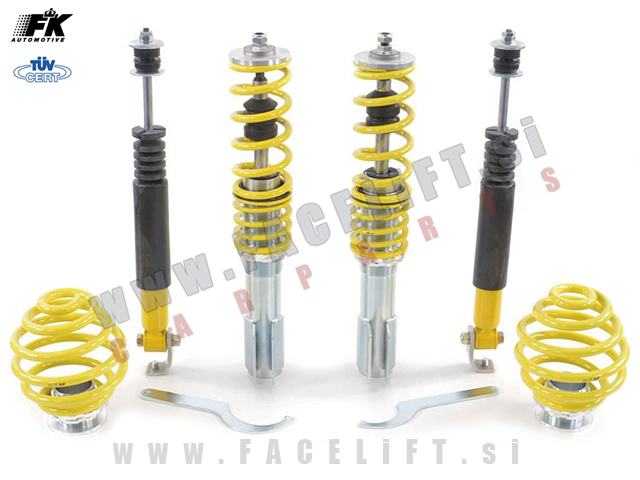 Nastavljivo vzmetenje (gewinde) FK. Vzmetenje je novo, z garancijo. Komplet vsebuje štiri amortizerje, štiri vzmeti in ključ za nastavitev višine.