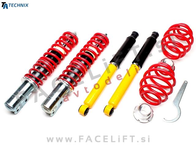Nastavljivo vzmetenje (gewinde) TA Technix. Vzmetenje je novo, z garancijo. Komplet vsebuje štiri amortizerje, štiri vzmeti in ključ za nastavitev višine.