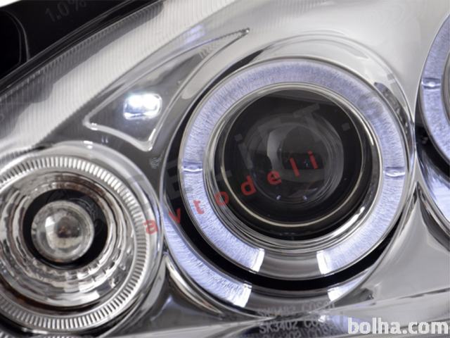 Halogenski žarometi z LED Angel Eyes pozicijskimi lučmi in lečo za kratki snop. Žarometi so novi, z garancijo. V kompletu prejmete par, levi in desni žaromet.