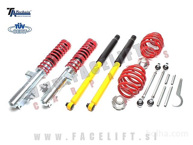 Nastavljivo vzmetenje TA-Technix. Vzmetenje je novo, z garancijo. Komplet vsebuje štiri amortizerje, štiri vzmeti in dva stabilizatorja.