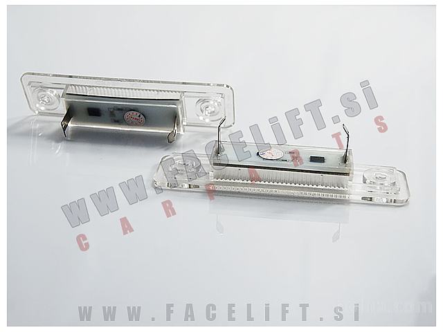 LED osvetlitev registrske tablice z ohišjem. Komplet vsebuje dva kosa. Brez napake na računalniku po montaži.
