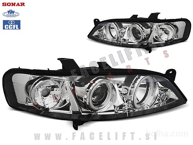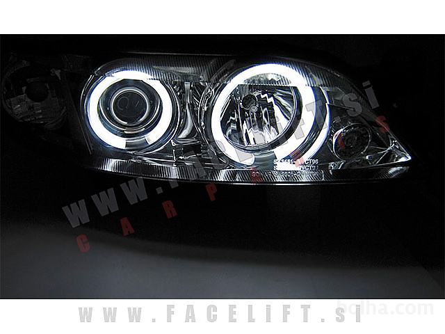 Žarometi z CCFL Angel Eyes obročki in lečo. Žarometi so novi, z garancijo. V kompletu prejmete par, levi in desni žaromet.
