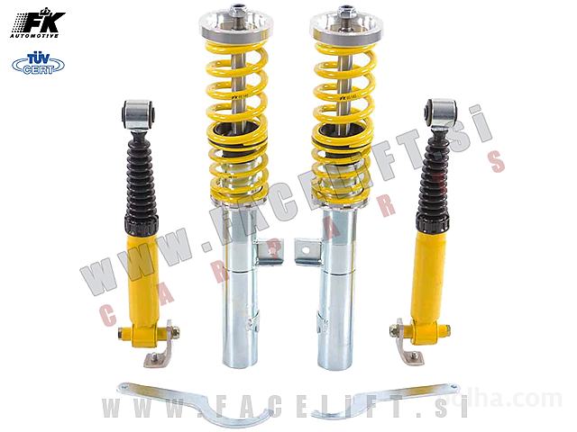 Nastavljivo vzmetenje (gewinde) FK. Vzmetenje je novo, z garancijo. Komplet vsebuje štiri amortizerje, štiri vzmeti in ključ za nastavitev višine.